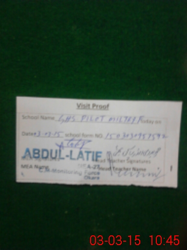 | EMIS Code: 39321027 | Name of School: GHS PILOT MILITARY FARM | |||
