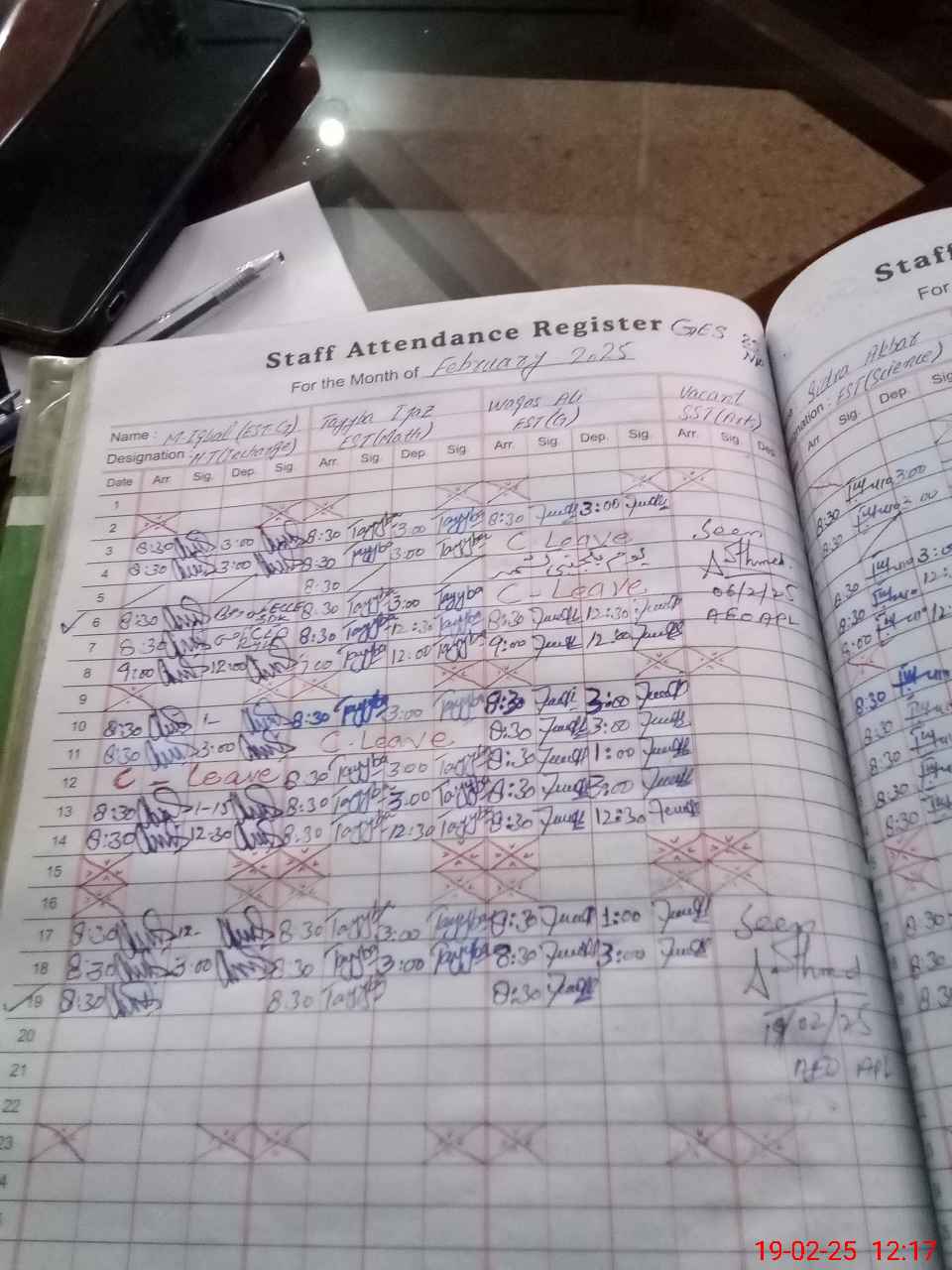 | CNIC | Full Name | Designation | R/C | Absence during last cal. month |