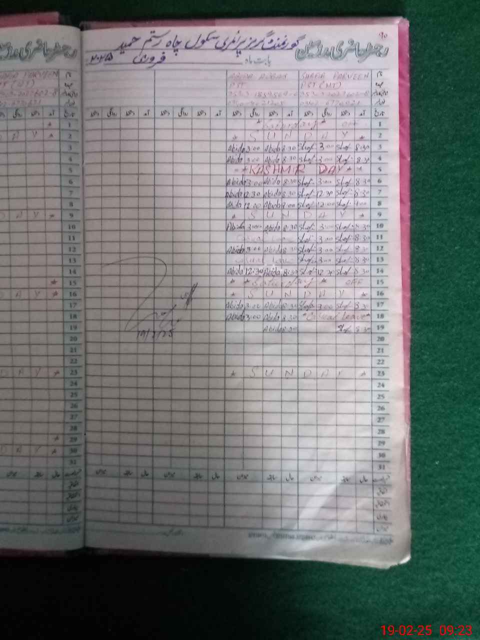 | CNIC | Full Name | Designation | R/C | Absence During Last Calender Month |