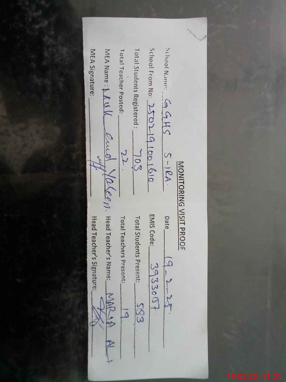 | EMIS Code: 39330157 | Name of School: GGHS CHAK NO. 5-1/RA | |||