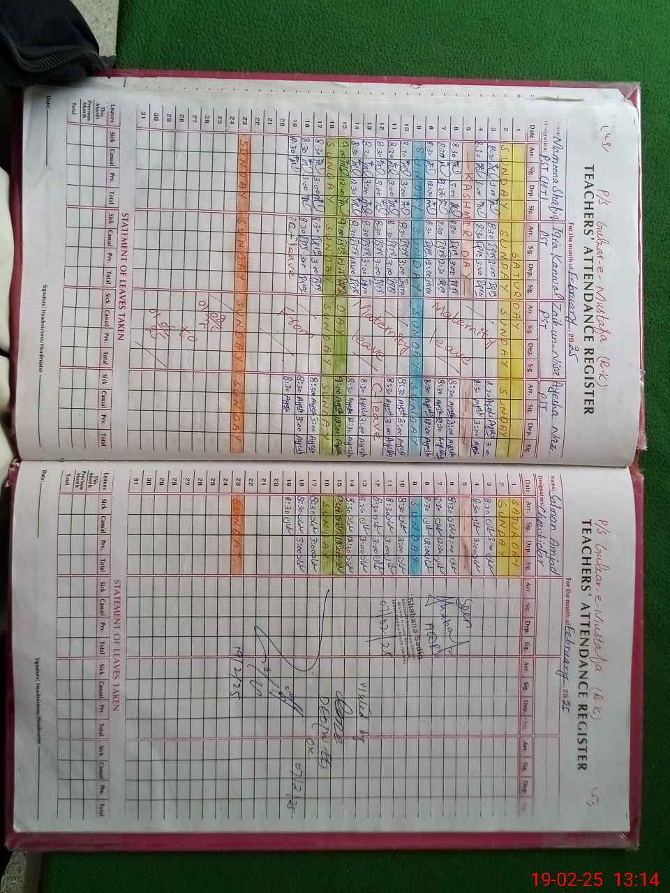 | CNIC | Full Name | Designation | R/C | Absence During Last Calender Month |