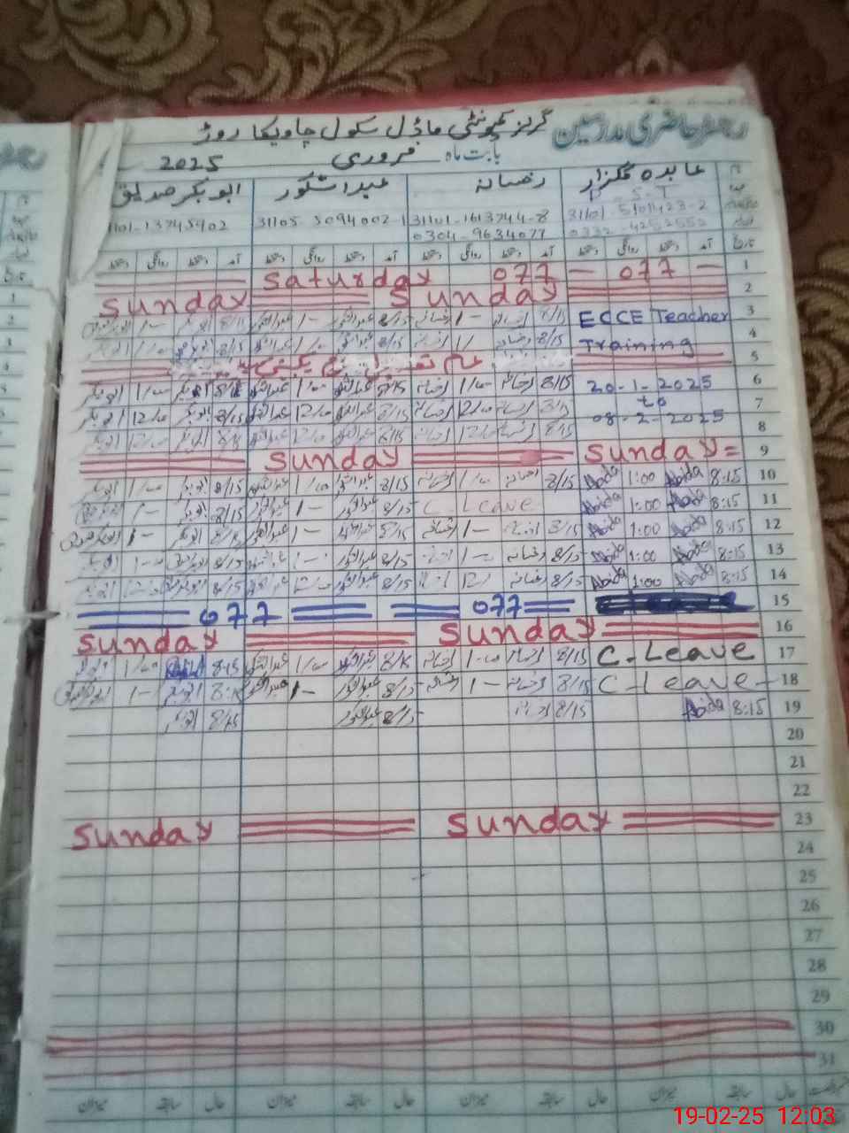 | Name: Uz**** Am**** Designation: (School Headmaster's/Headmistress's) PST Phone/Cell Number: 03**** |