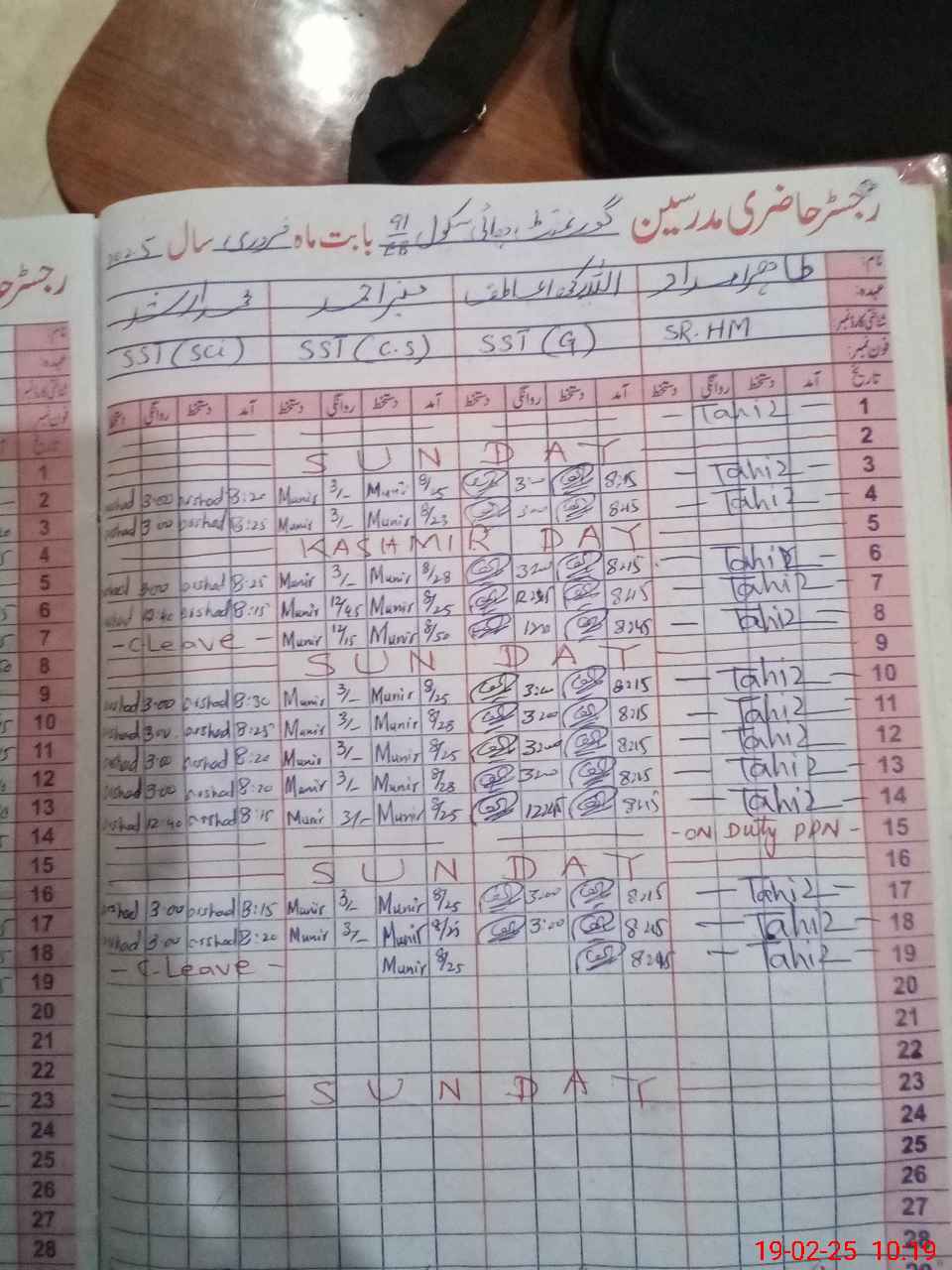 | CNIC | Full Name | Designation | R/C | Absence During Last Calender Month |