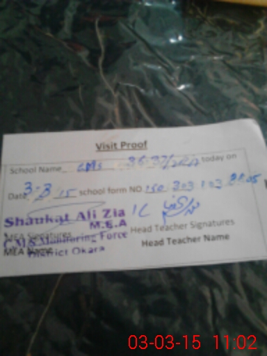 | School Visited by School Health & Nutrition Supervisor (No. of Visits) | 2 | Name1: | Muhammmad Akram | Name2: | Muhammad Akram |