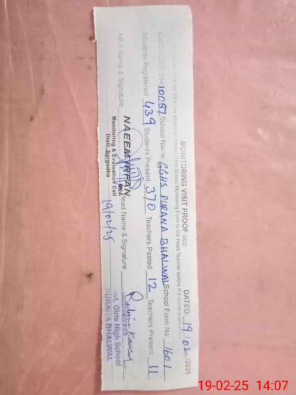 | EMIS Code: 38410087 | Name of School: GGHS PURANA BHALWAL | |||