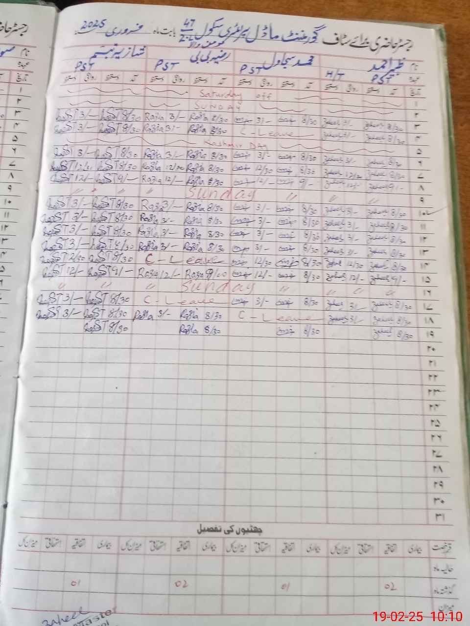 | CNIC | Full Name | Designation | R/C | Absence During Last Calender Month |