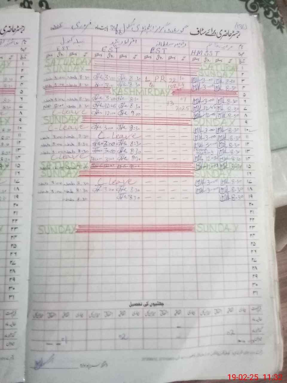 | CNIC | Full Name | Designation | R/C | Absence During Last Calender Month |