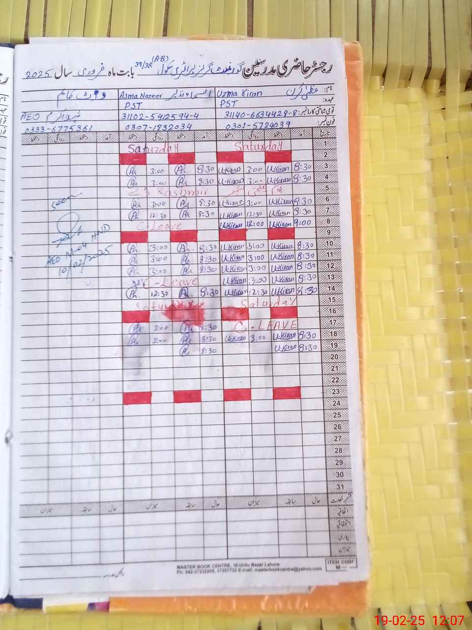 | Name: Uz**** Ki**** Designation: (School Headmaster's/Headmistress's) PST Phone/Cell Number: 03**** |