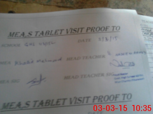 | Attendance Register | Head Teacher | MEA with School | Visit Proof |