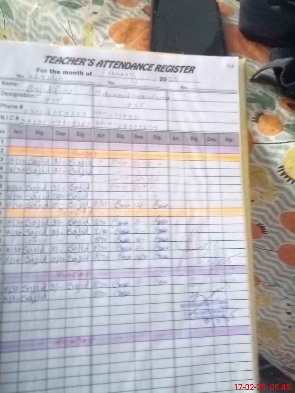 | Name: Ha**** Su**** Designation: (School Headmaster's/Headmistress's) PST Phone/Cell Number: 03**** |