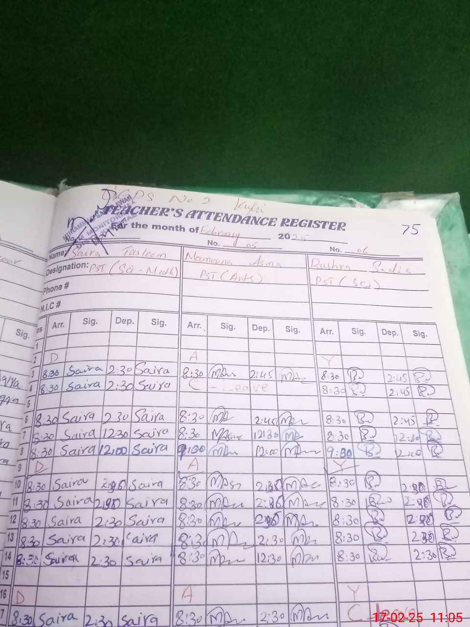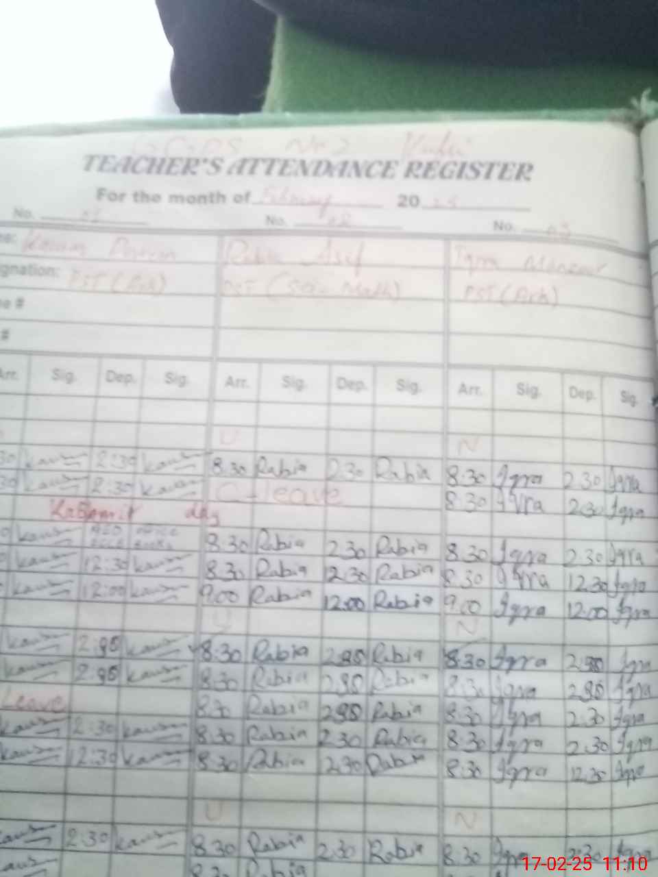 | Name: KA**** PA**** Designation: (School Headmaster's/Headmistress's) PST Phone/Cell Number: 03**** |