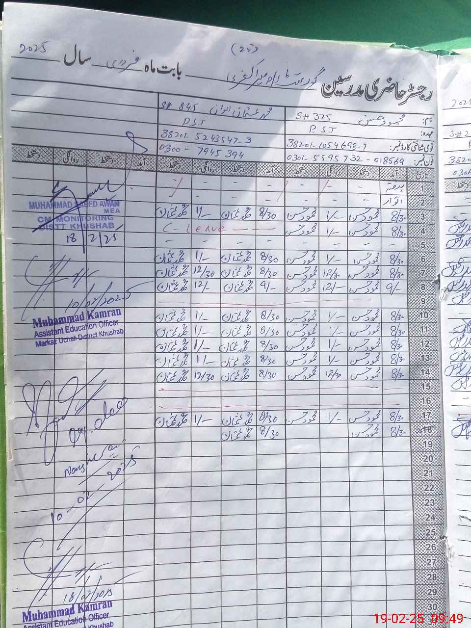 | Name: Mu**** Ar**** Designation: (School Headmaster's/Headmistress's) PST Phone/Cell Number: 03**** |