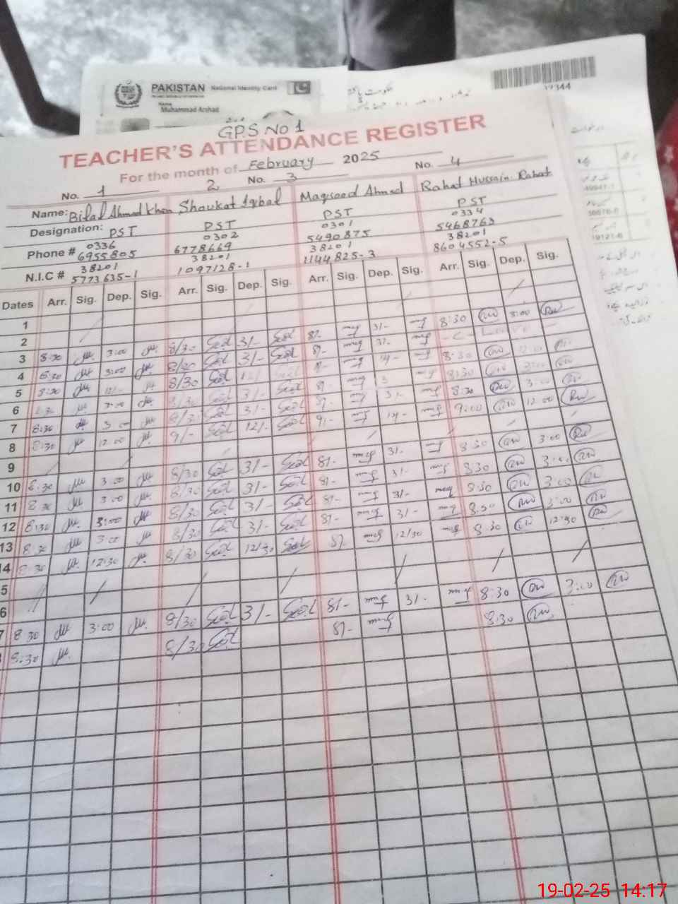 | Name: Bi**** Ah**** Designation: (School Headmaster's/Headmistress's) PST Phone/Cell Number: 03**** |