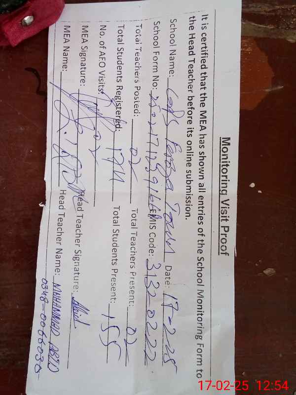 | Name: Mu**** Ab**** Designation: (School Headmaster's/Headmistress's) PST Phone/Cell Number: 03**** |