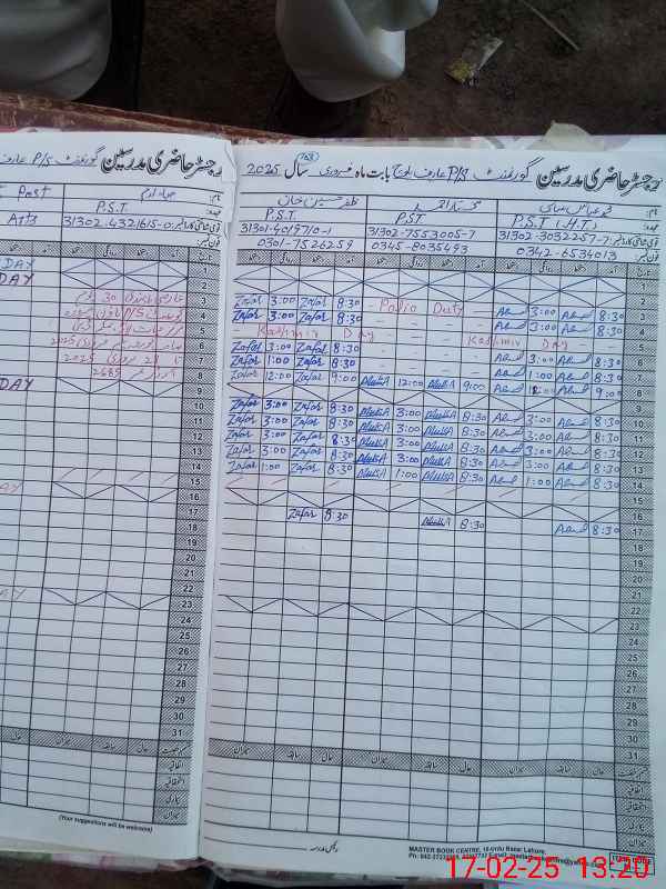| CNIC | Full Name | Designation | R/C | Absence During Last Calender Month |