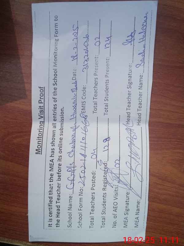 | EMIS Code: 31320436 | Name of School: GGPS CHARAGH HUSSAIN SHAH | |||