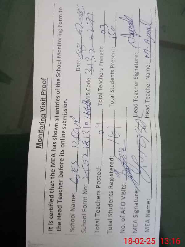 | Certified that this School was Inspected by the Undersigned MEA/DMO Today and the Information Stated Above is as Per Record. | |||||