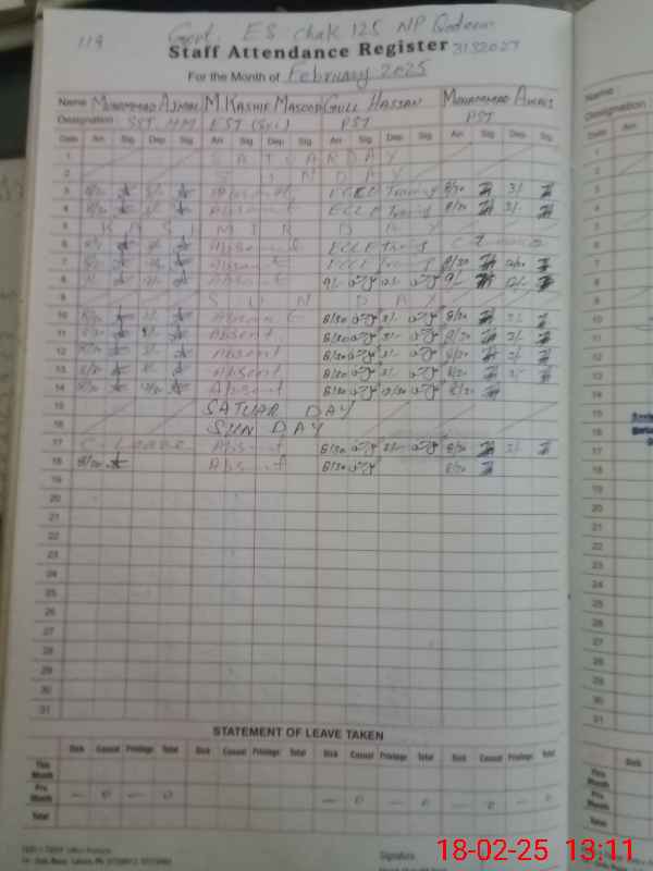 | 31**** | Mu**** Ka**** Ma**** | 3 | 1 | 0 | 0 | 0 | 0 | 0 | 0 | 0 | 0 | 0 | Absent (Un-Authorized) |