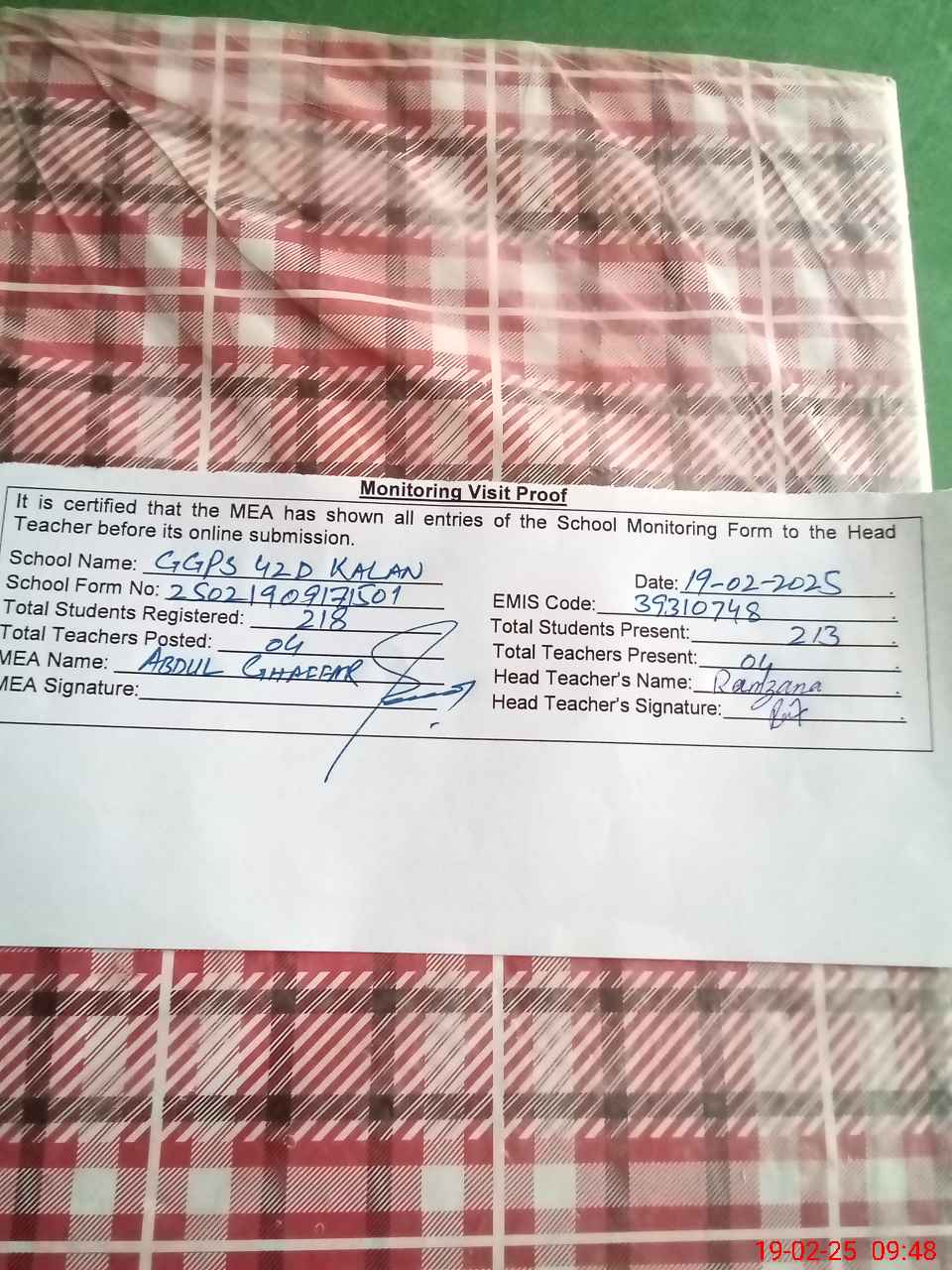 | EMIS Code: 39310748 | Name of School: GGES 42/D KALAN | |||