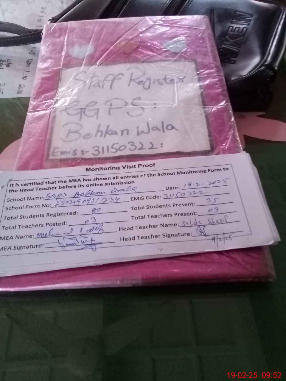 | Attendance Register | Head Teacher | MEA with School | Visit Proof |