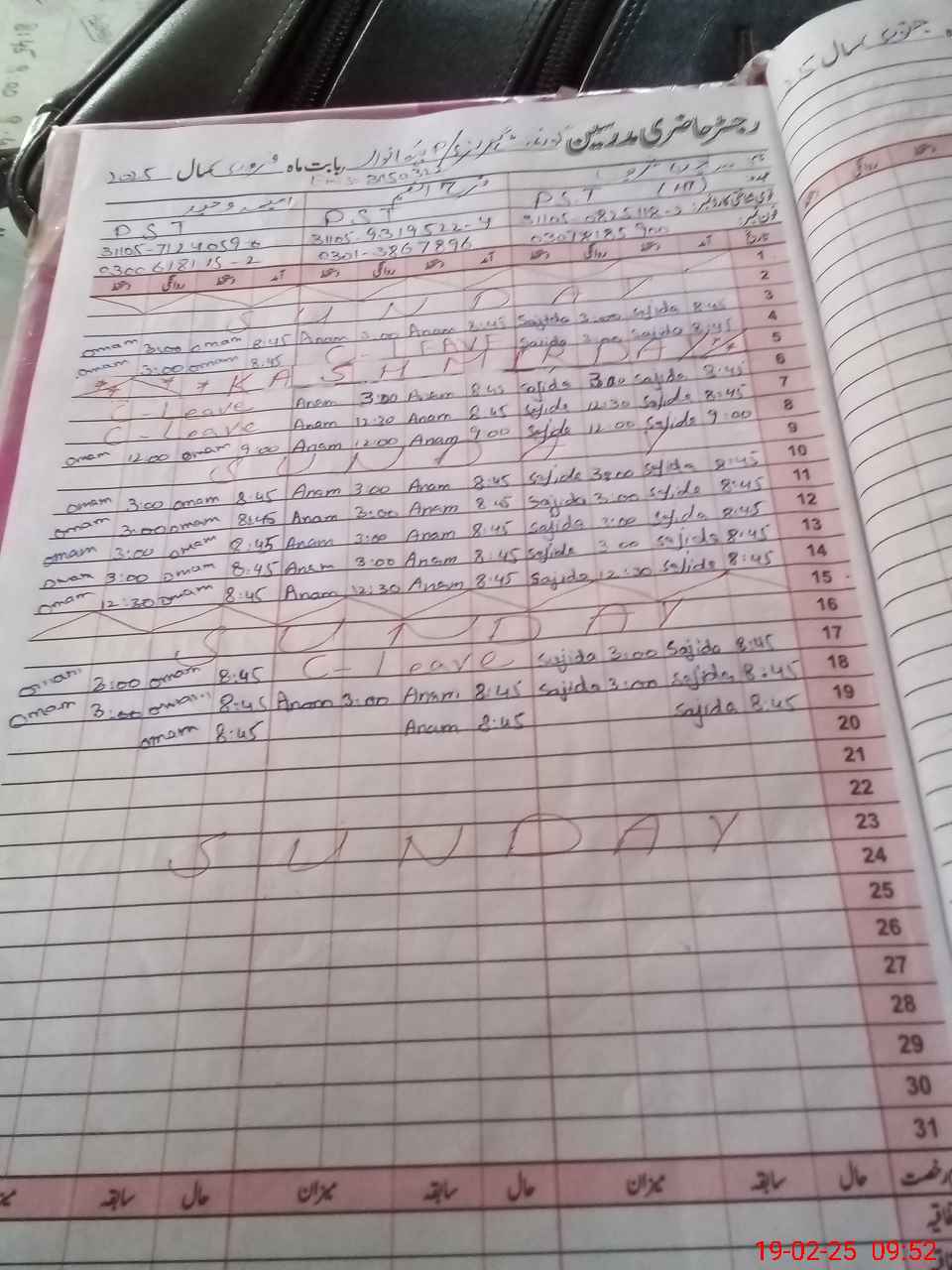 | CNIC | Full Name | Designation | R/C | Absence During Last Calender Month |