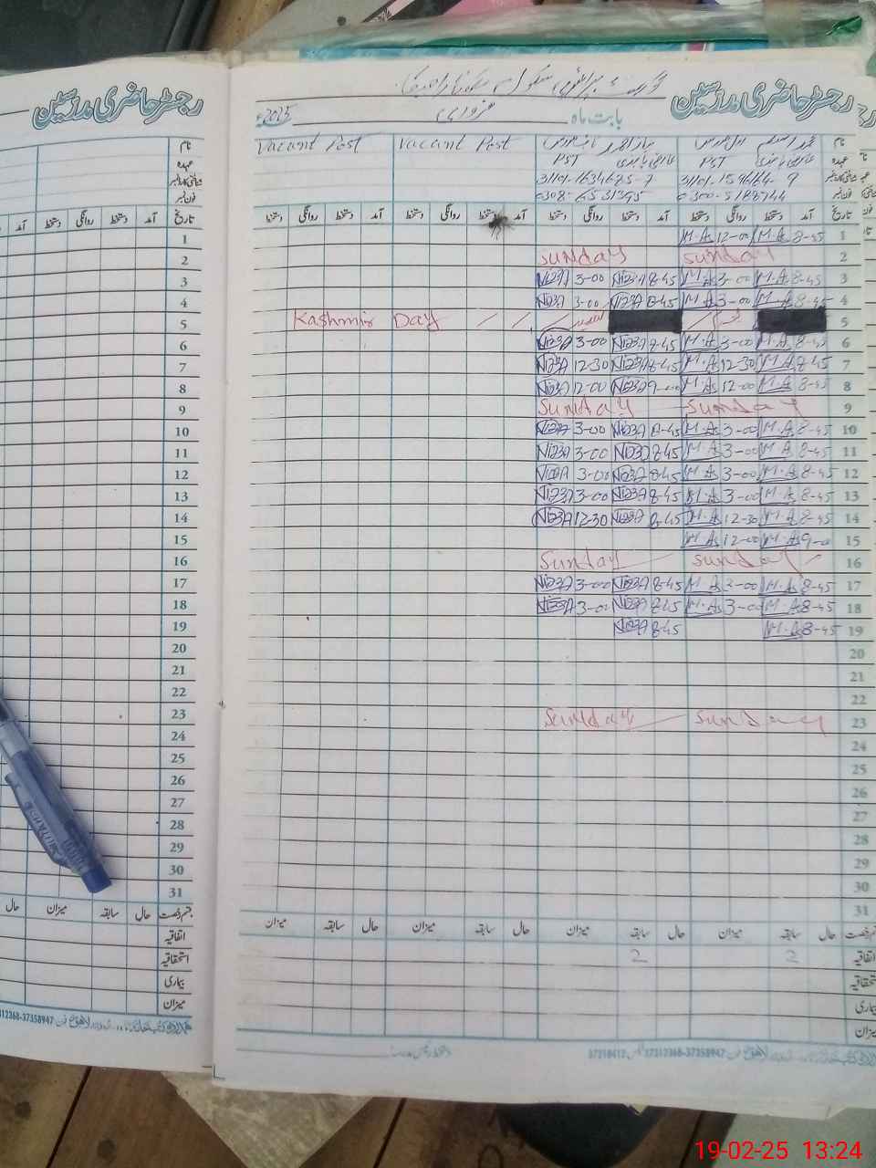 | CNIC | Full Name | Designation | R/C | Absence During Last Calender Month |