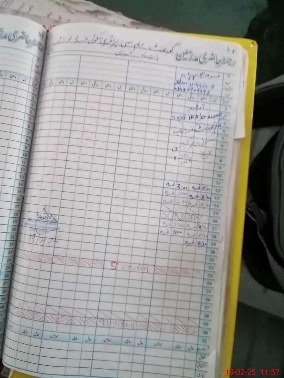 | CNIC | Full Name | Designation | R/C | Absence During Last Calender Month |