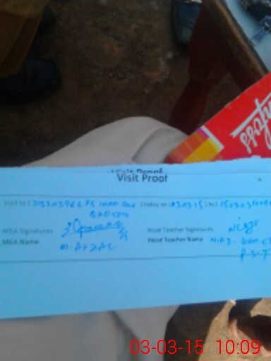 | Attendance Register | Head Teacher | MEA with School | Visit Proof |