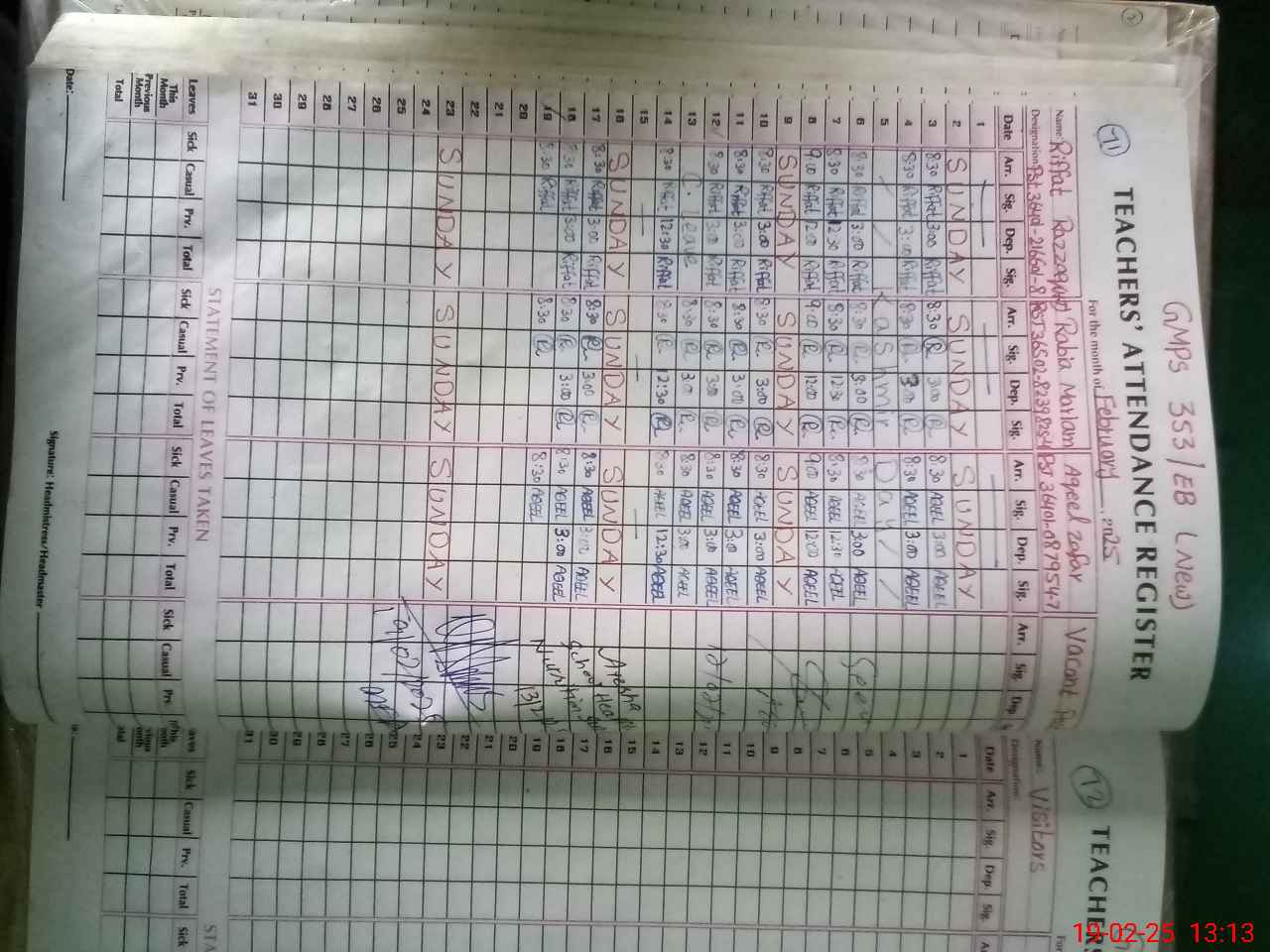 | Name: RI**** RA**** Designation: (School Headmaster's/Headmistress's) PST Phone/Cell Number: 03**** |
