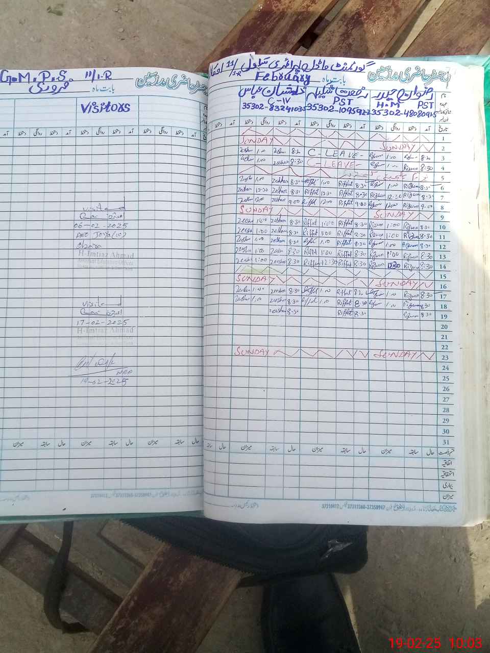 | CNIC | Full Name | Designation | R/C | Absence During Last Calender Month |