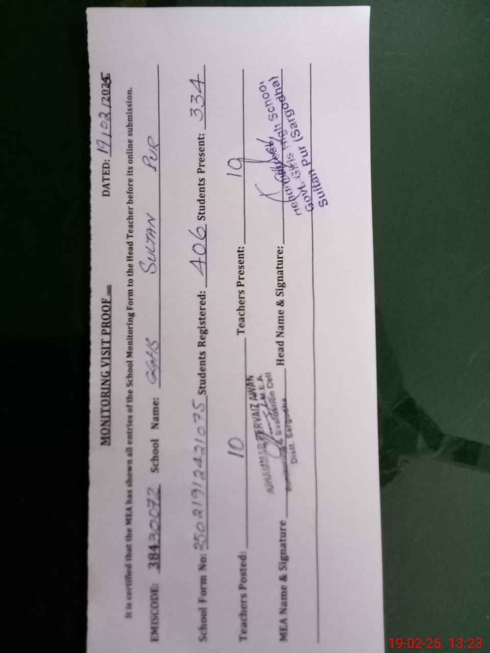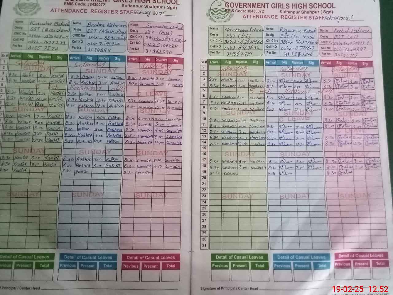 | EMIS Code: 38430072 | Name of School: GGHS SULTAN PUR | |||