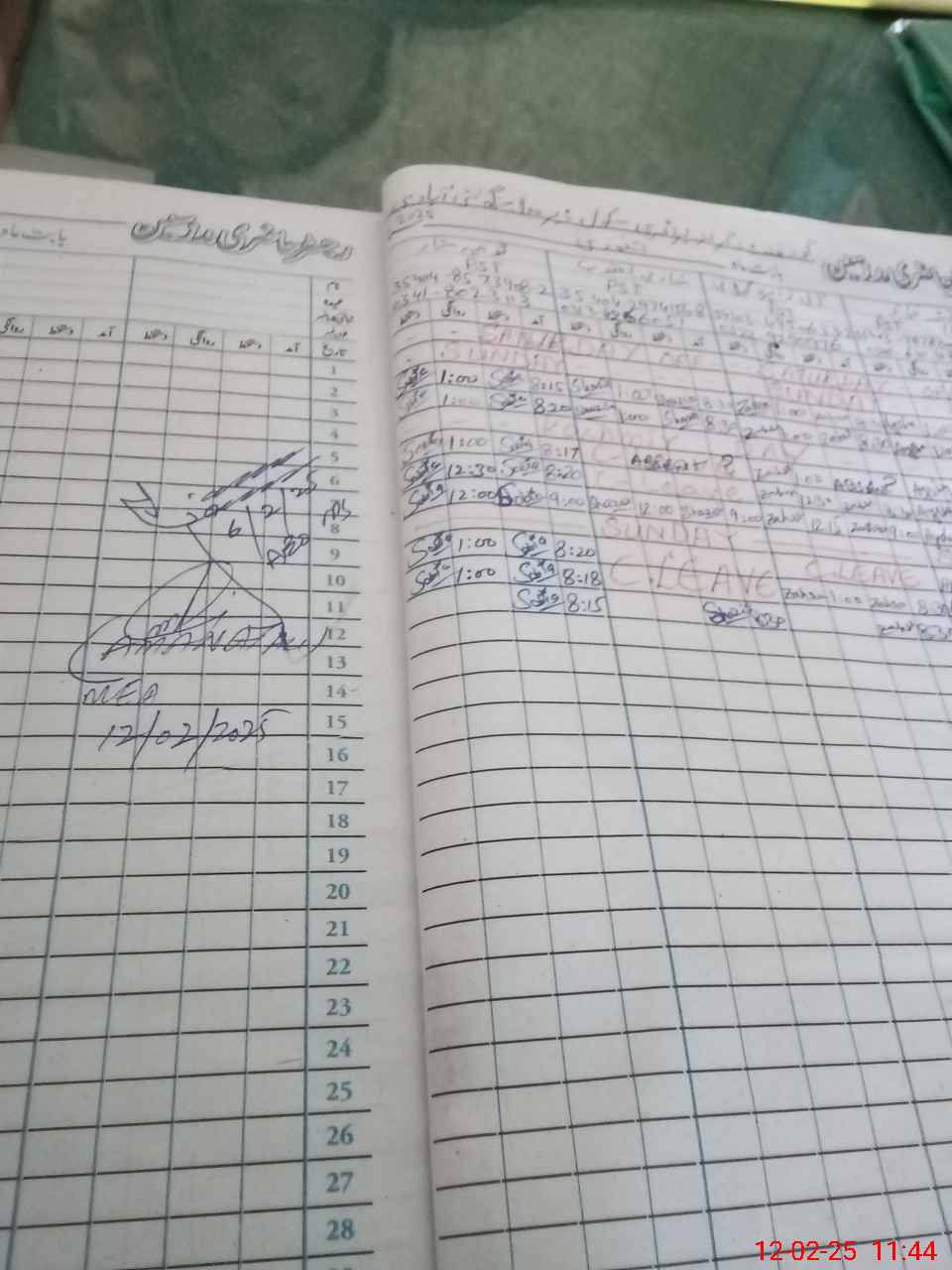 | CNIC | Full Name | Designation | R/C | Absence During Last Calender Month |