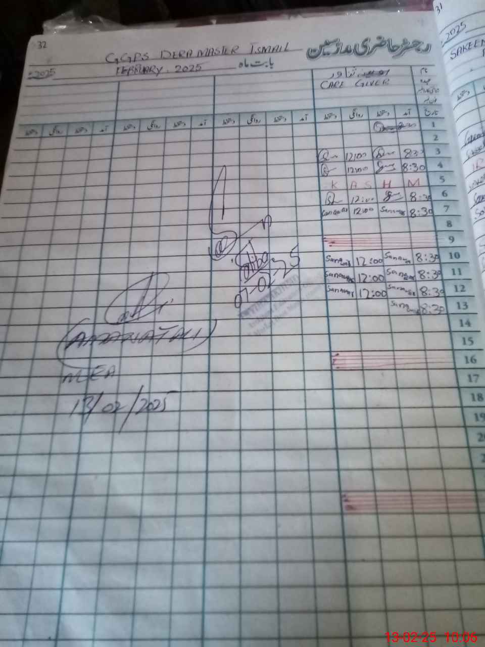 | CNIC | Full Name | Designation | R/C | Absence during last cal. month |