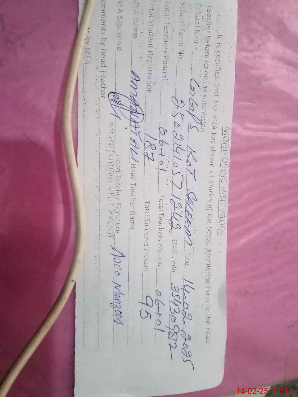 | EMIS Code: 35430982 | Name of School: GGPS KOT SALEEM | |||