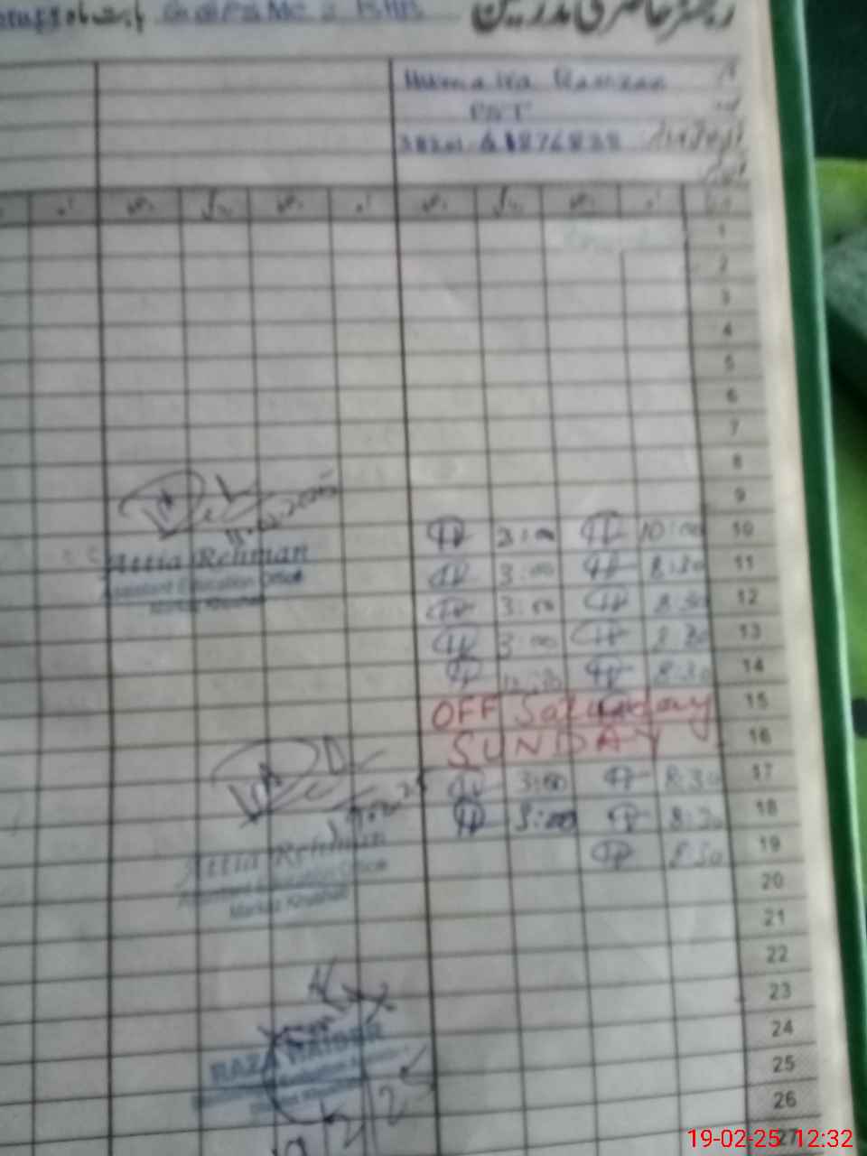 | Name: UZ**** BA**** Designation: (School Headmaster's/Headmistress's) PST Phone/Cell Number: 03**** |