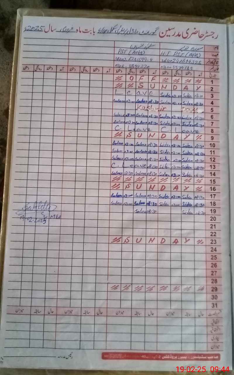 | Name: Si**** Na**** Designation: (School Headmaster's/Headmistress's) PST Phone/Cell Number: 03**** |