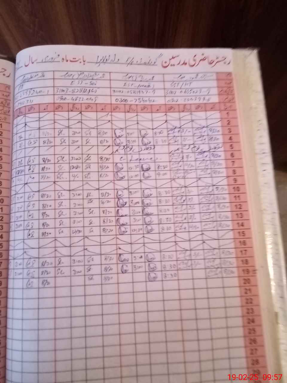 | CNIC | Full Name | Designation | R/C | Absence During Last Calender Month |