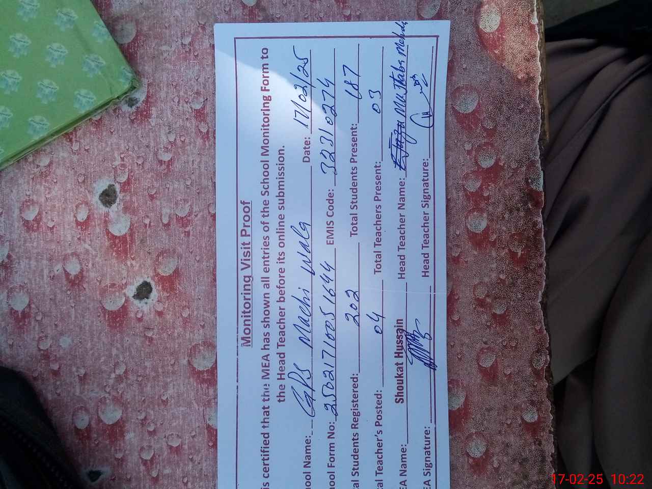 | EMIS Code: 32310274 | Name of School: GPS MACHI WALA | |||