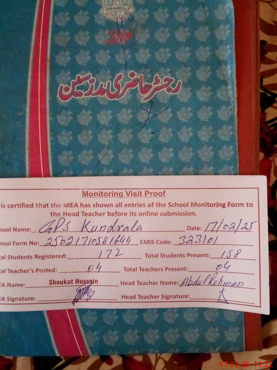 | EMIS Code: 32310135 | Name of School: GPS KUNDRALA | |||