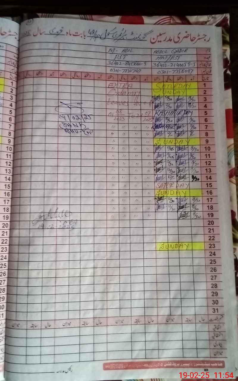 | Name: AB**** QA**** Designation: (School Headmaster's/Headmistress's) PST Phone/Cell Number: 03**** |