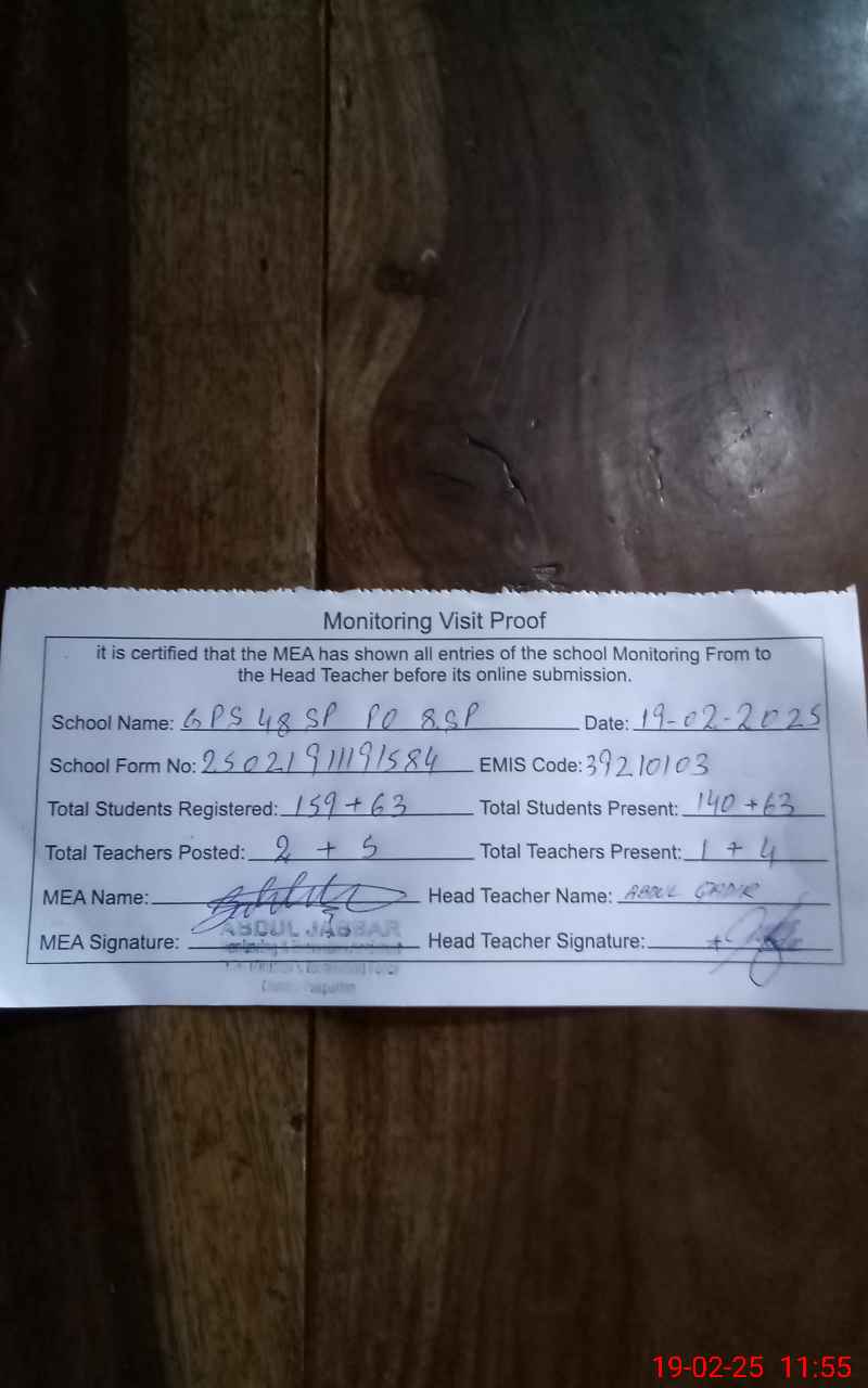 | EMIS Code: 39210103 | Name of School: GPS 48/SP P.O 8/S.P PAKPATTAN | |||