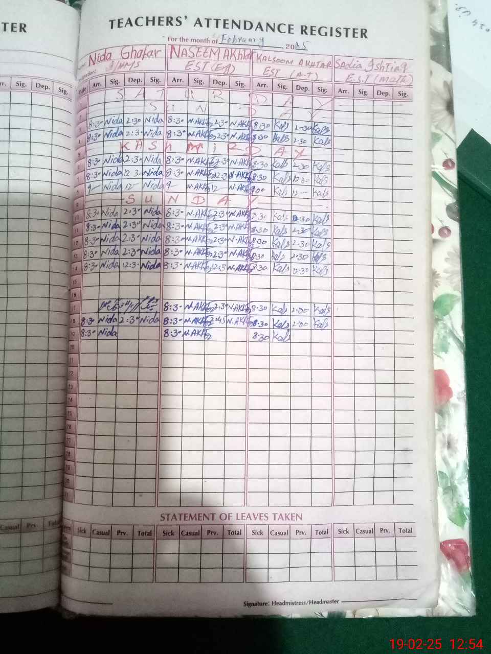 | 33**** | Ki**** Sh**** | 1 | 0 | 0 | 0 | 0 | 0 | 0 | 0 | 0 | 0 | Absent (Un-Authorized) | |