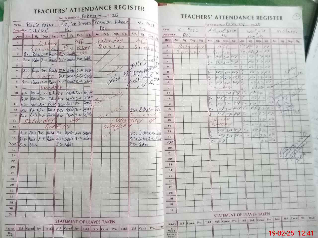 | Leave | Duty | Absent | Maternity | Medical | Ex- Pak |
