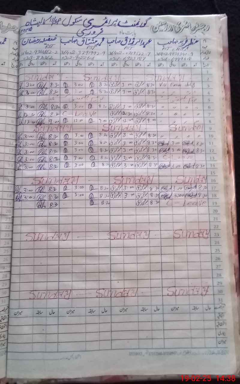| CNIC | Full Name | Designation | R/C | Absence During Last Calender Month |