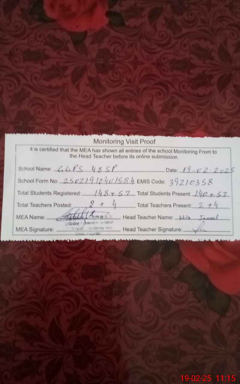 | EMIS Code: 39210358 | Name of School: GGPS 48 SP | |||