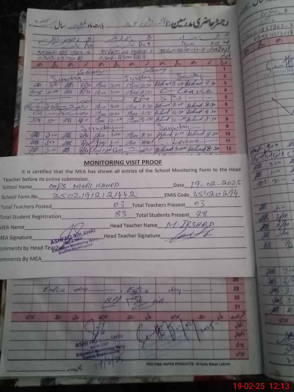 | EMIS Code: 35420294 | Name of School: GPS MARI KHURD | |||