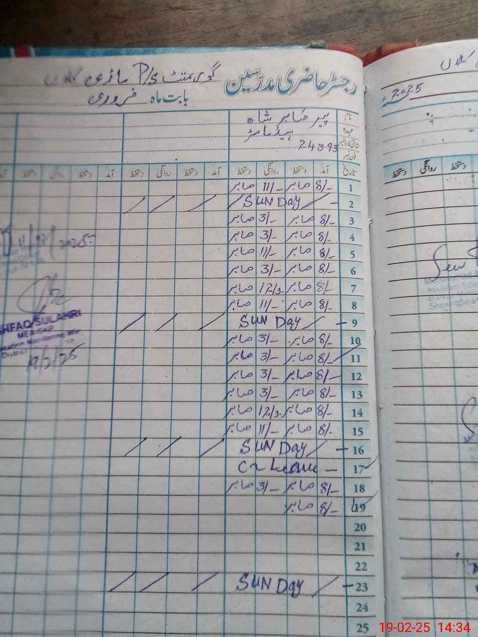 | CNIC | Full Name | Designation | R/C | Absence During Last Calender Month |
