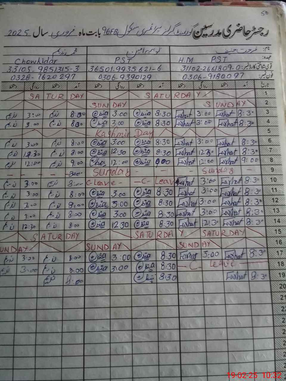 | Name: FA**** HA**** Designation: (School Headmaster's/Headmistress's) PST Phone/Cell Number: 03**** |