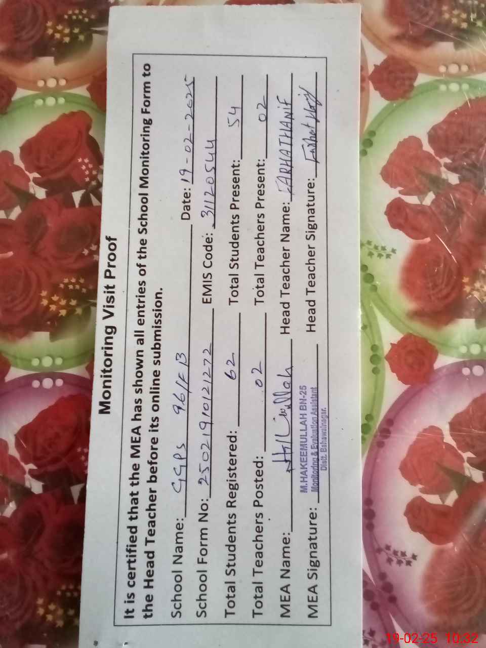 | EMIS Code: 31120544 | Name of School: GGPS CHAK NO. 96/FB | |||