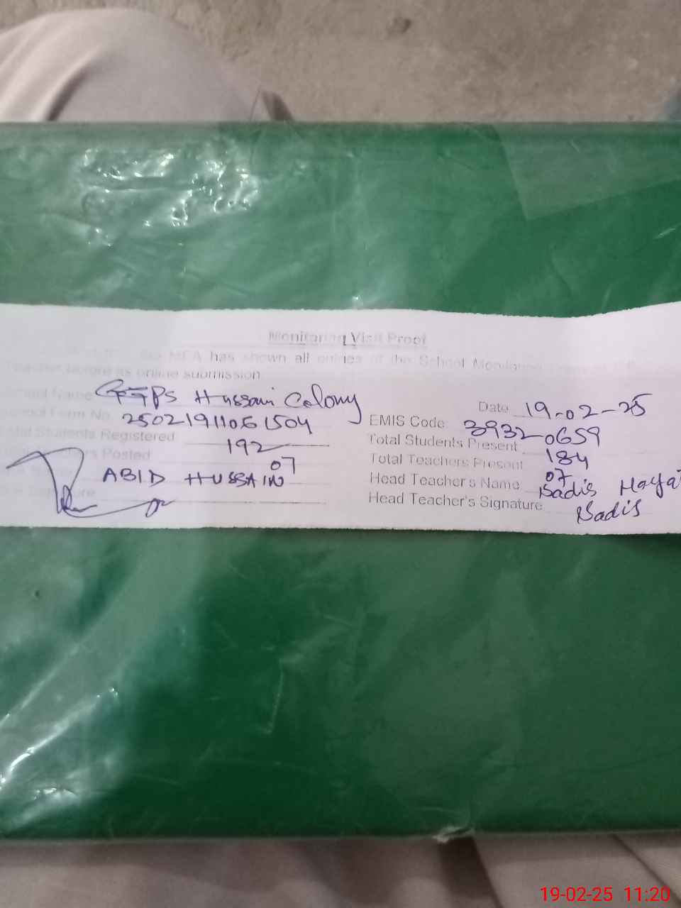 | EMIS Code: 39320659 | Name of School: GGPS HUSSAIN COLONY | |||
